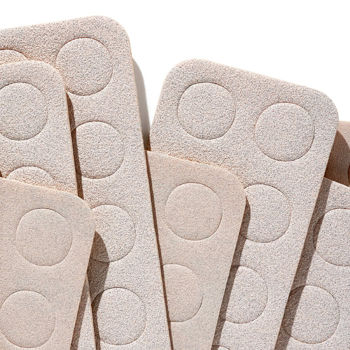 Erős ragasztófelülettel rendelkező, öntapadós, eldobható, reszelő korongok gépi pedikűrhöz M méretben.